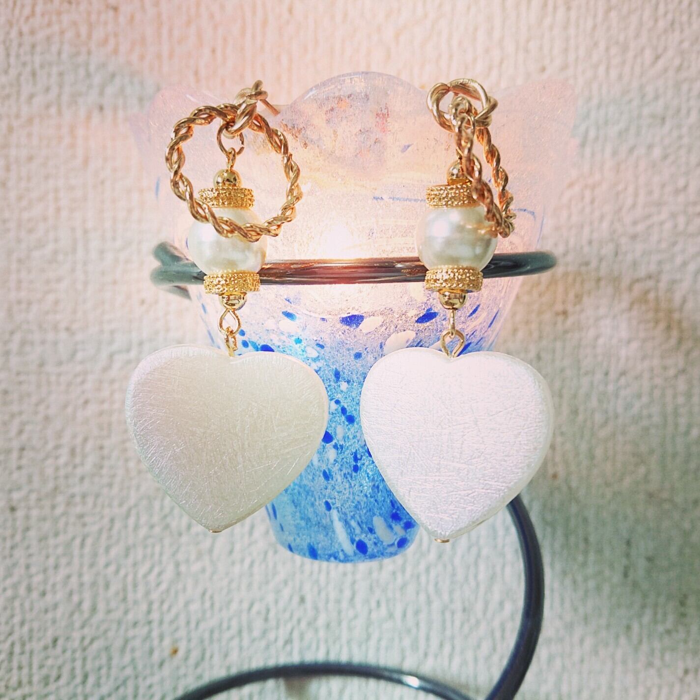 ハートに合わせてパールビーズで仕上げています。