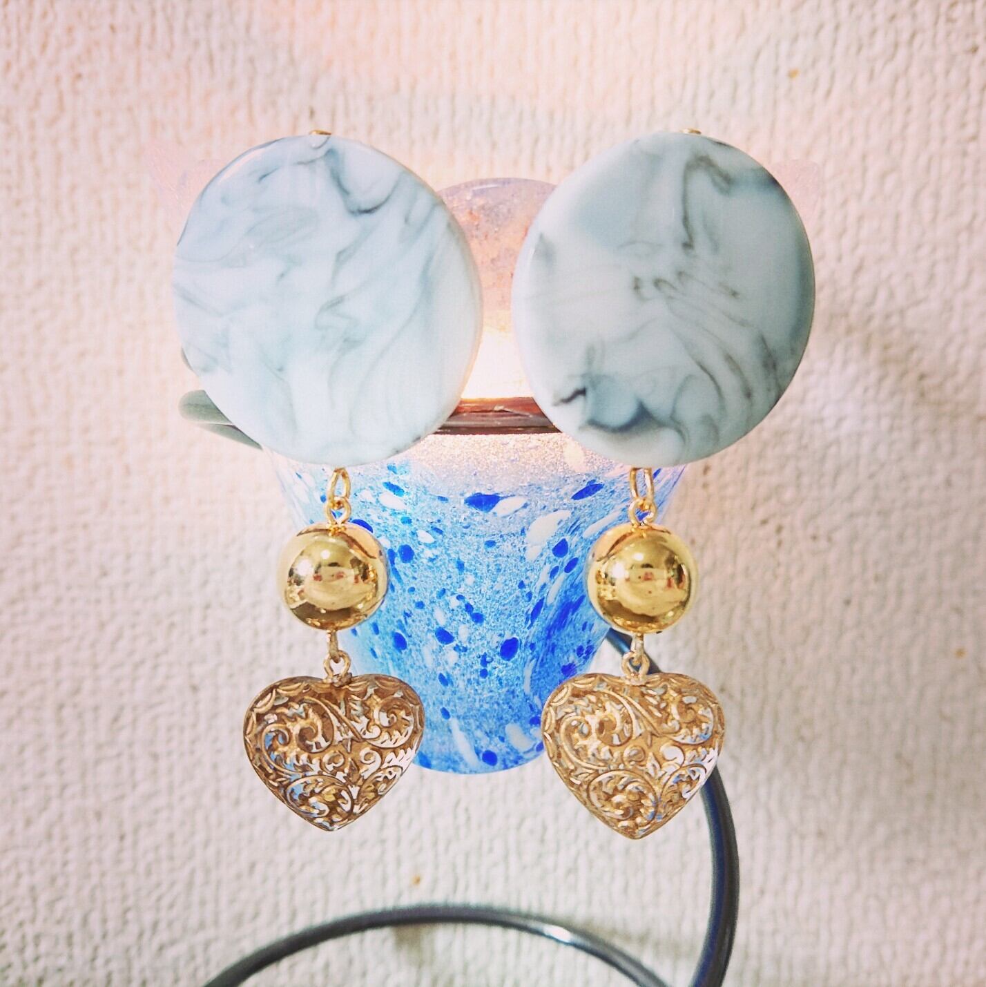 ハートのドイツ製パーツ使用。中はガラスになっていてキラキラ反射します♪
