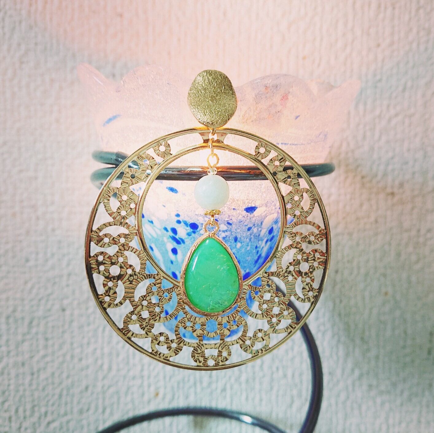 グリーンベースのオーロラパーツと、天然石のアマゾンナイトを使用しています♪