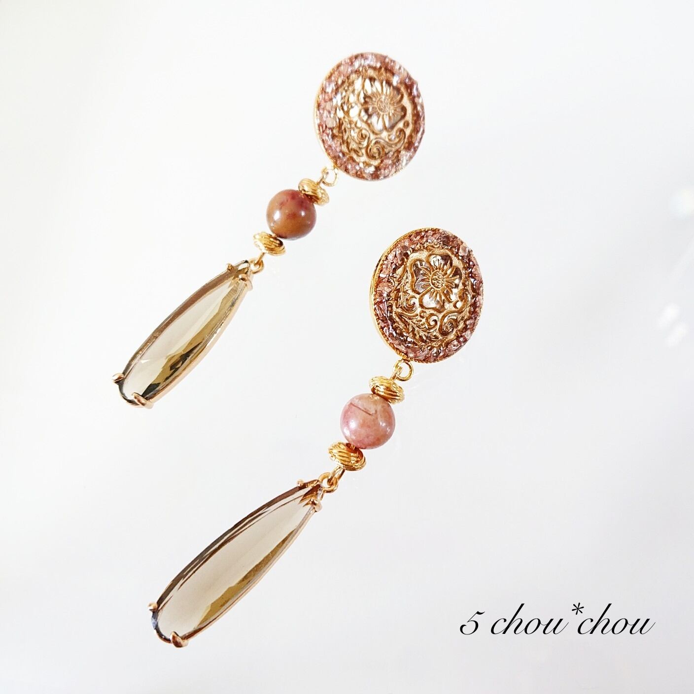 ドイツ製のカボションとシャンパンゴールドのダストストーンを合わせました。