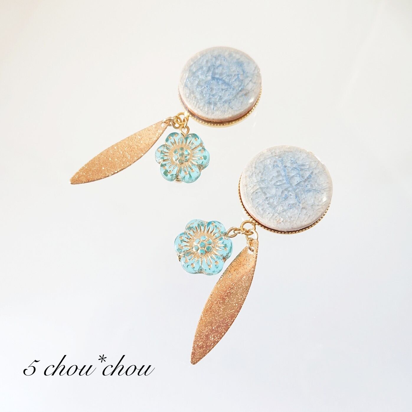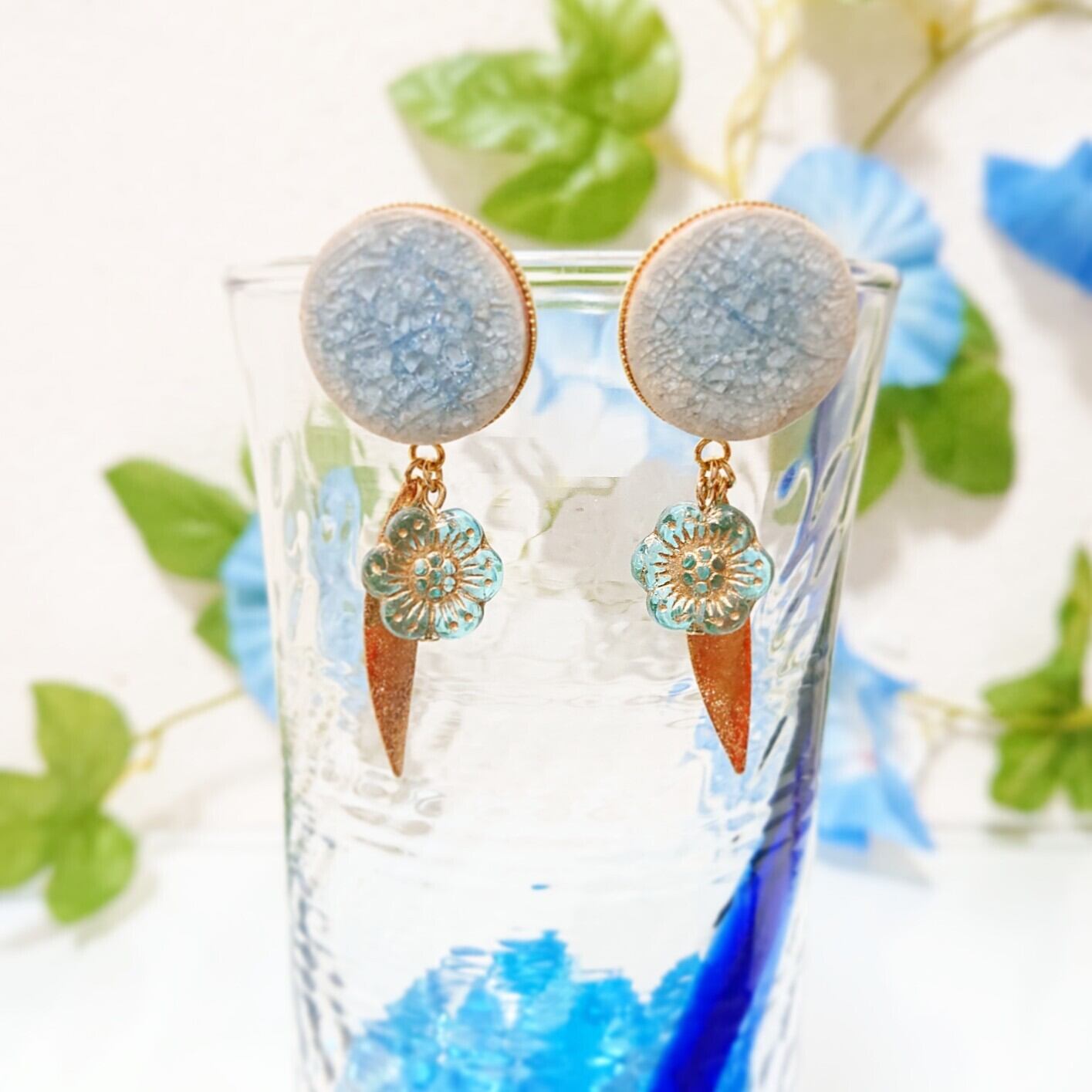 表面がクラックガラスのタイル素材をピアスパーツにしました♪