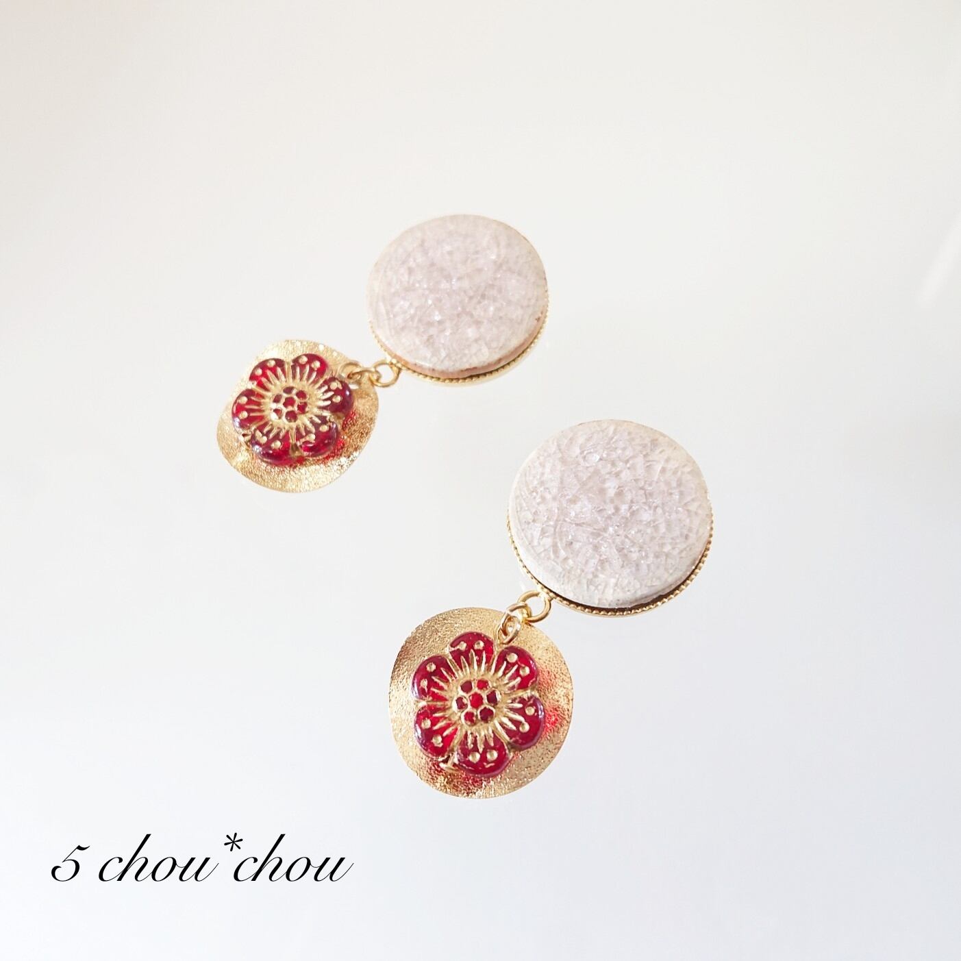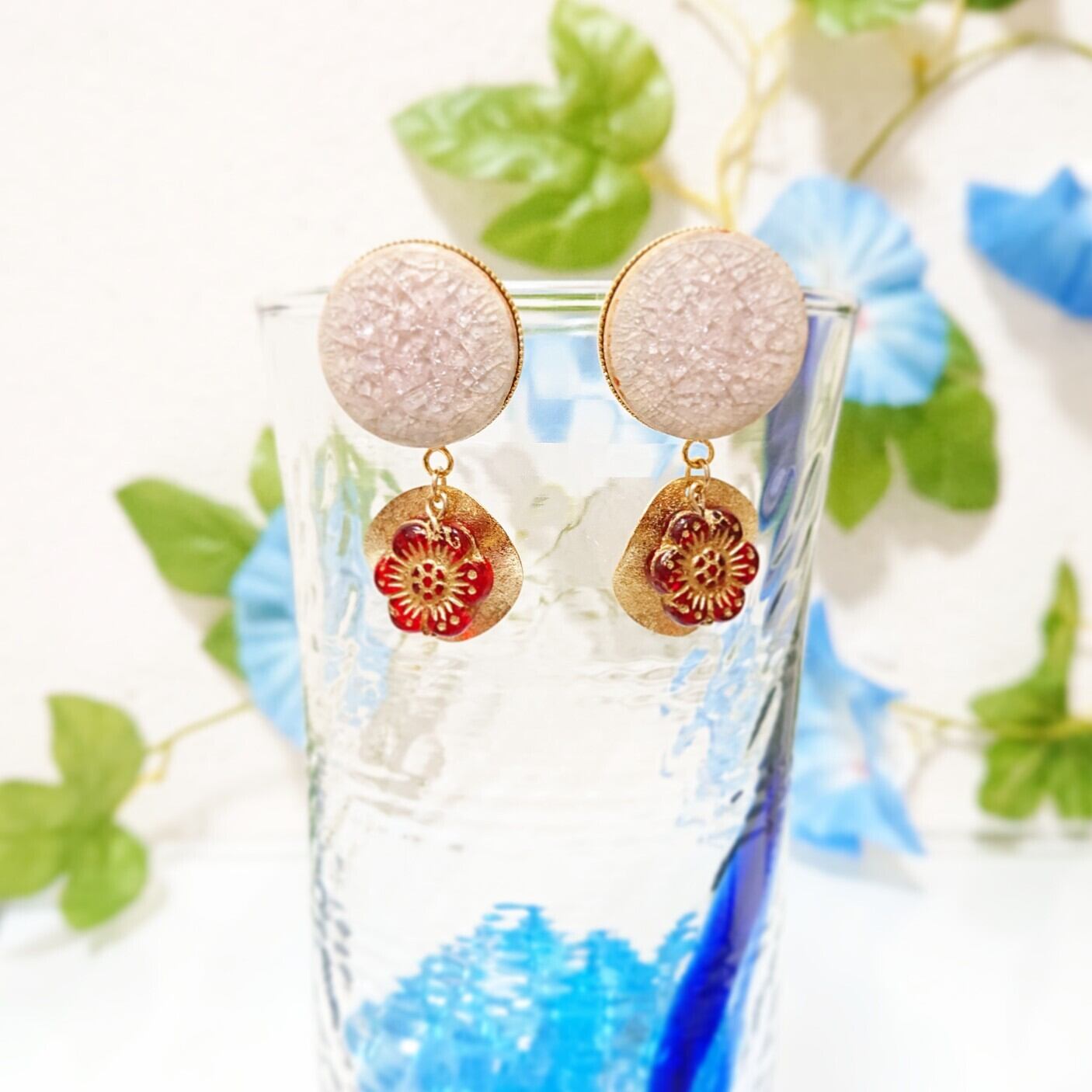 表面がクラックガラスのタイル素材をピアスパーツにしました♪