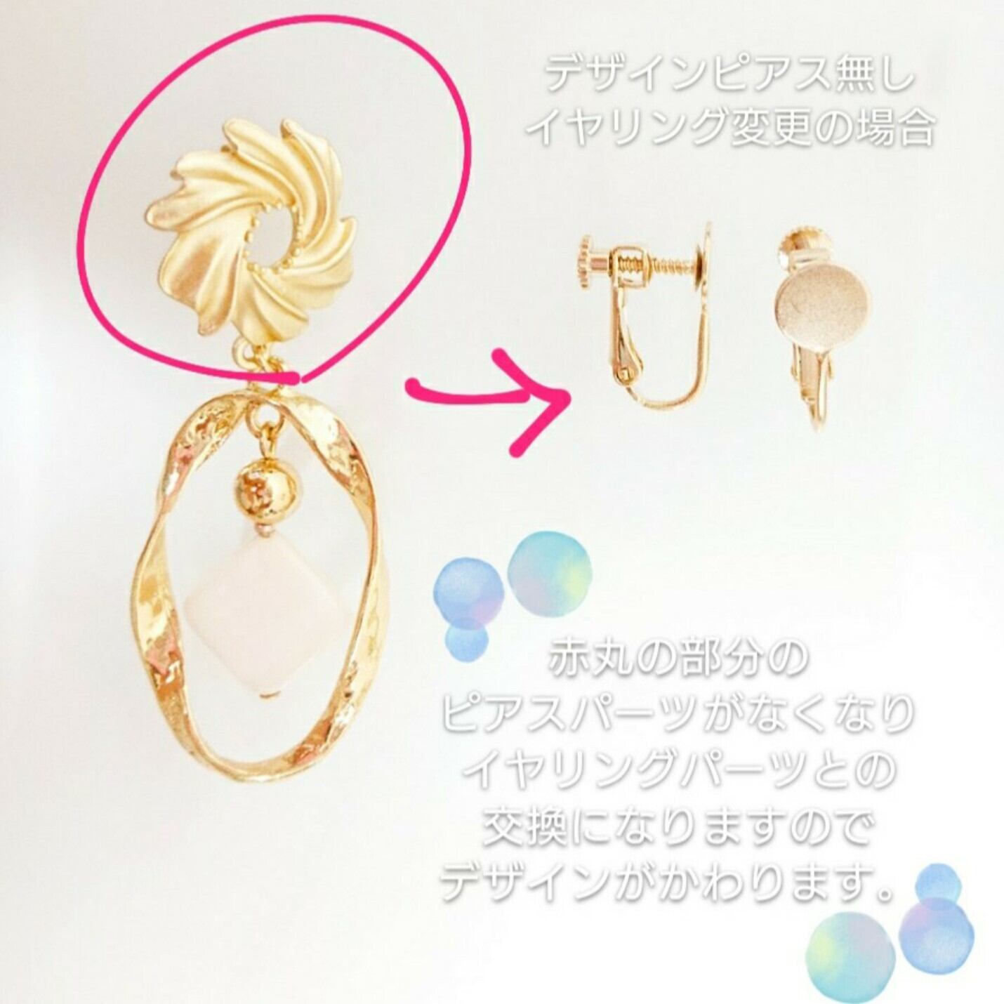 イヤリング、チタンU字ピアスに変更の場合はかなりデザインが変わってしまいますので、お写真ご確認の上ご希望下さい。