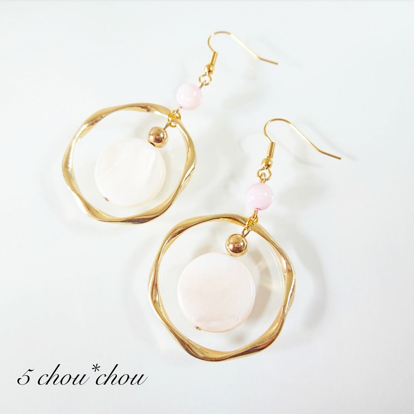天然シェル、ゴールドパーツ、天然シェルビーズのラベンダーを使用しております♪