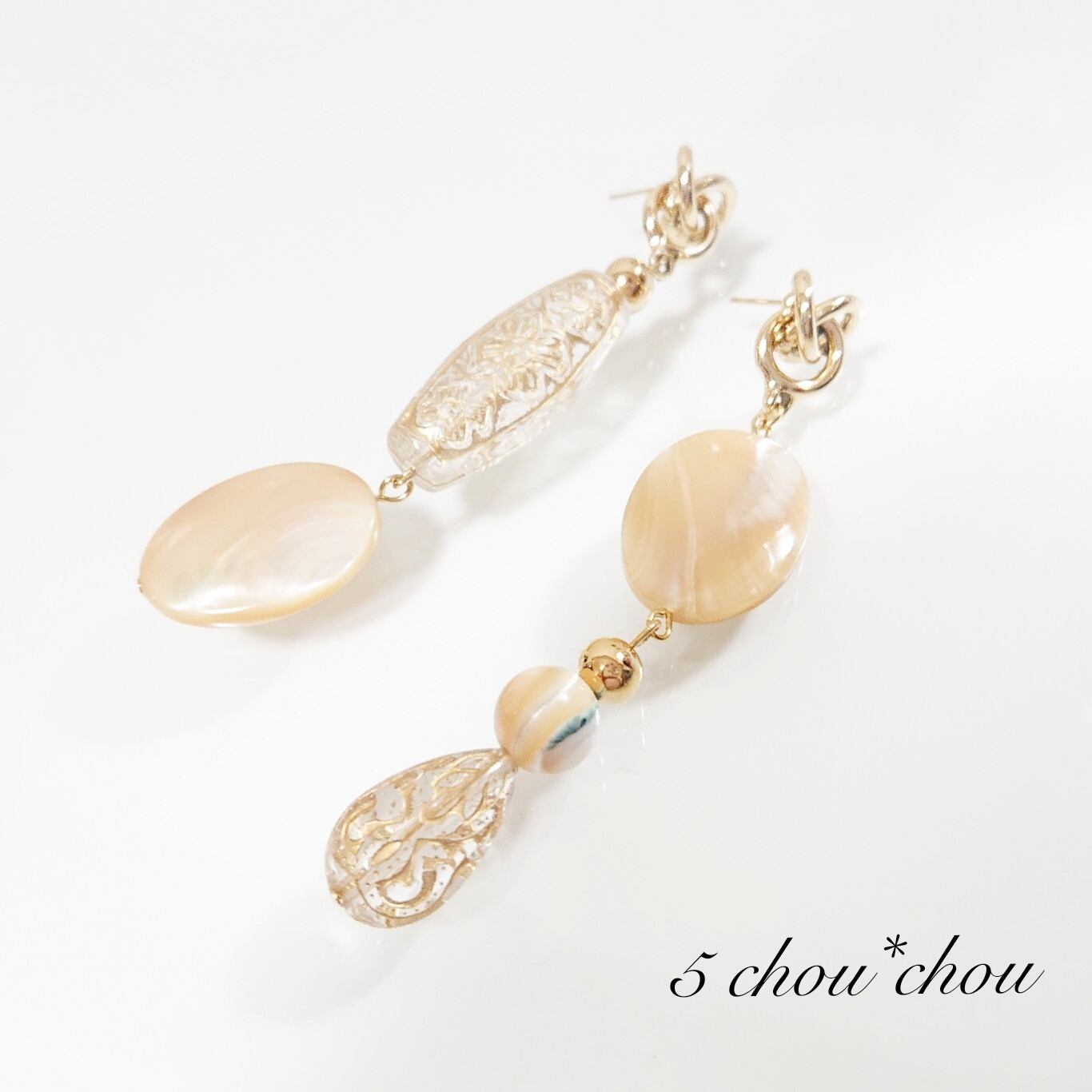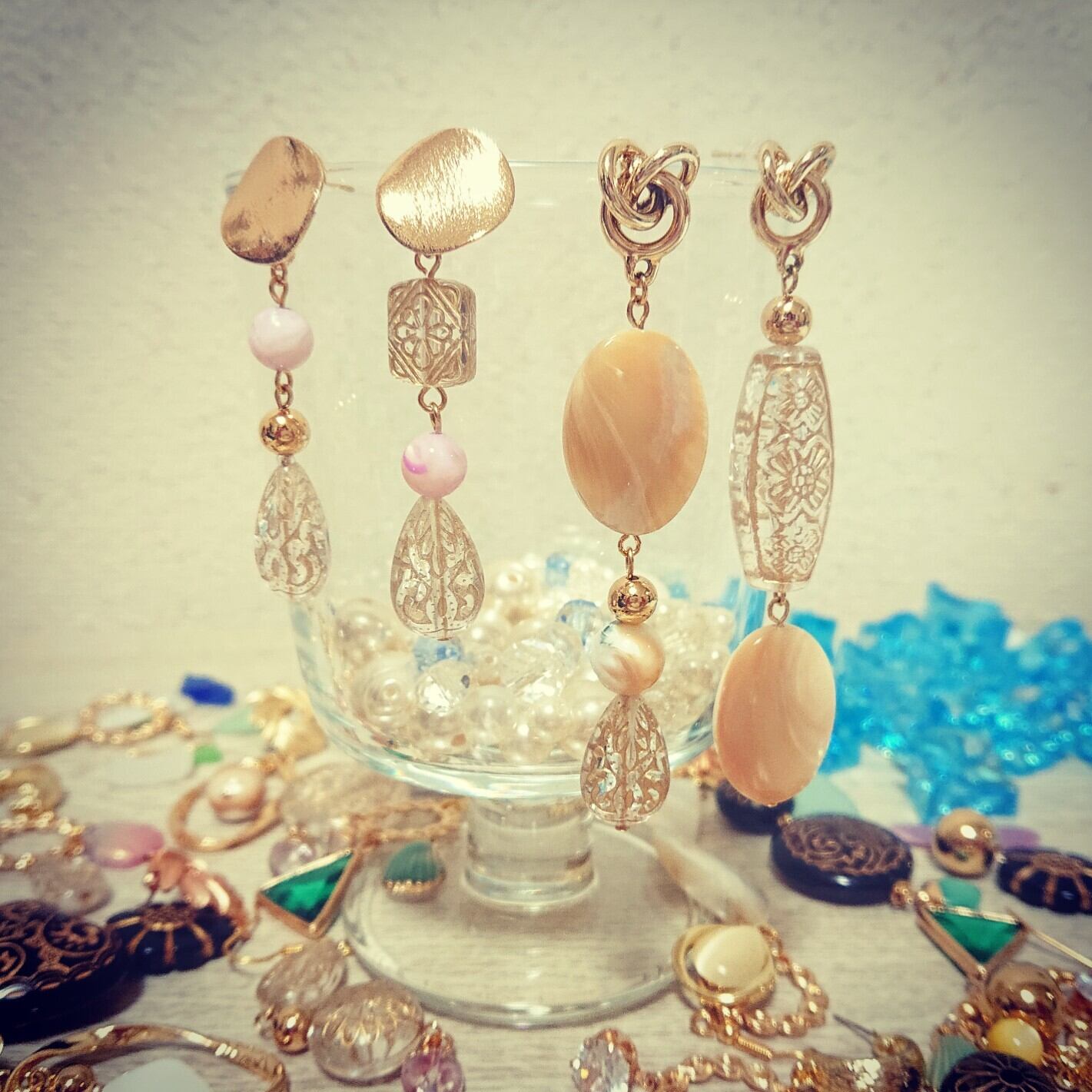 ゴールドパーツ、天然シェル(夜光貝)、アンティーク調パーツを使用しております♪