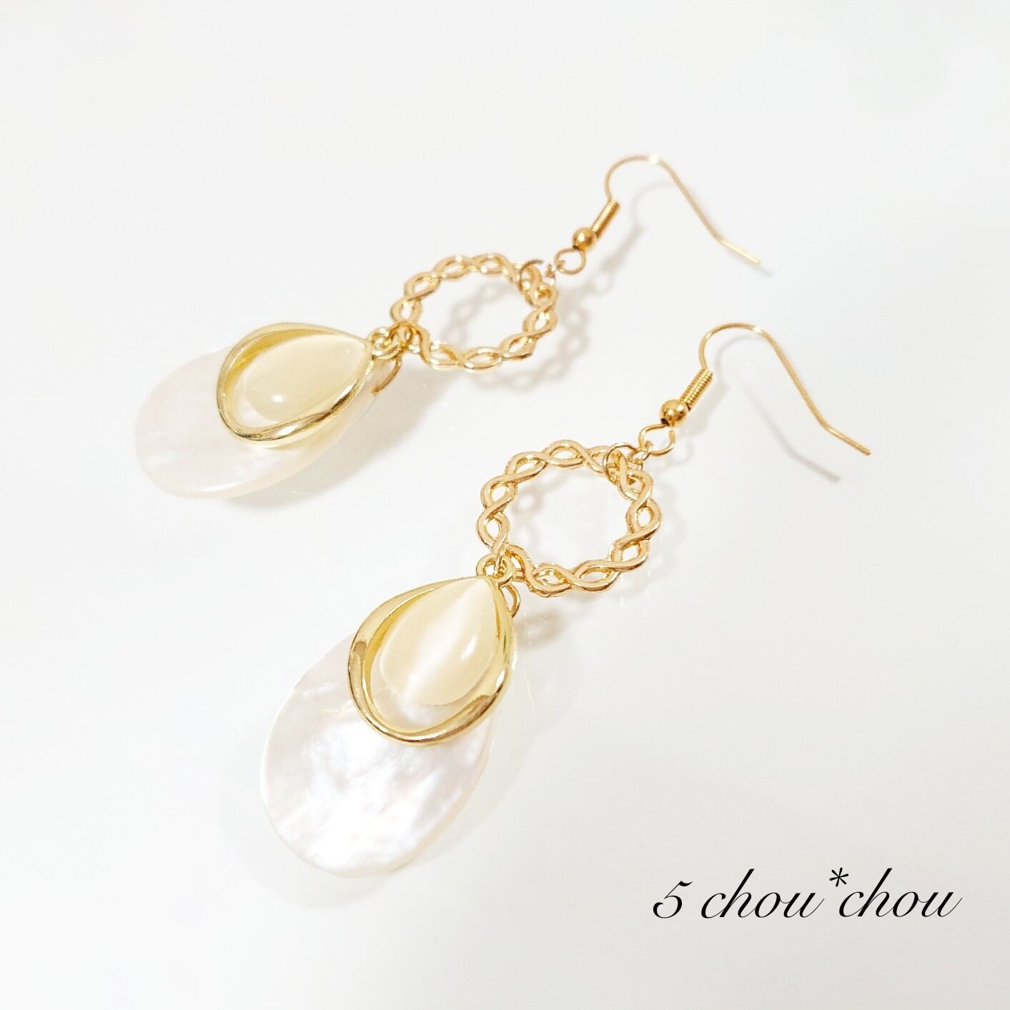 ゴールドパーツ、キャッツアイチャーム、天然シェルを使用しております♪