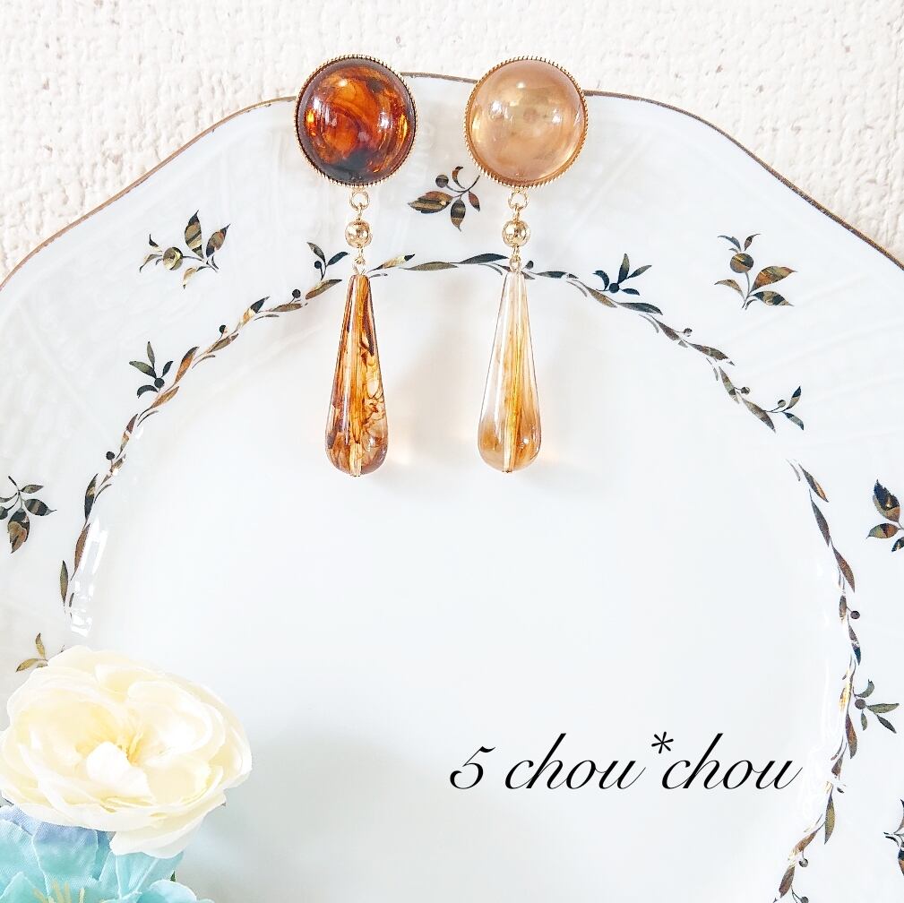 ピアス or イヤリング ~Praline No.9~/ドロップ/カフェオレ/アレルギー対応