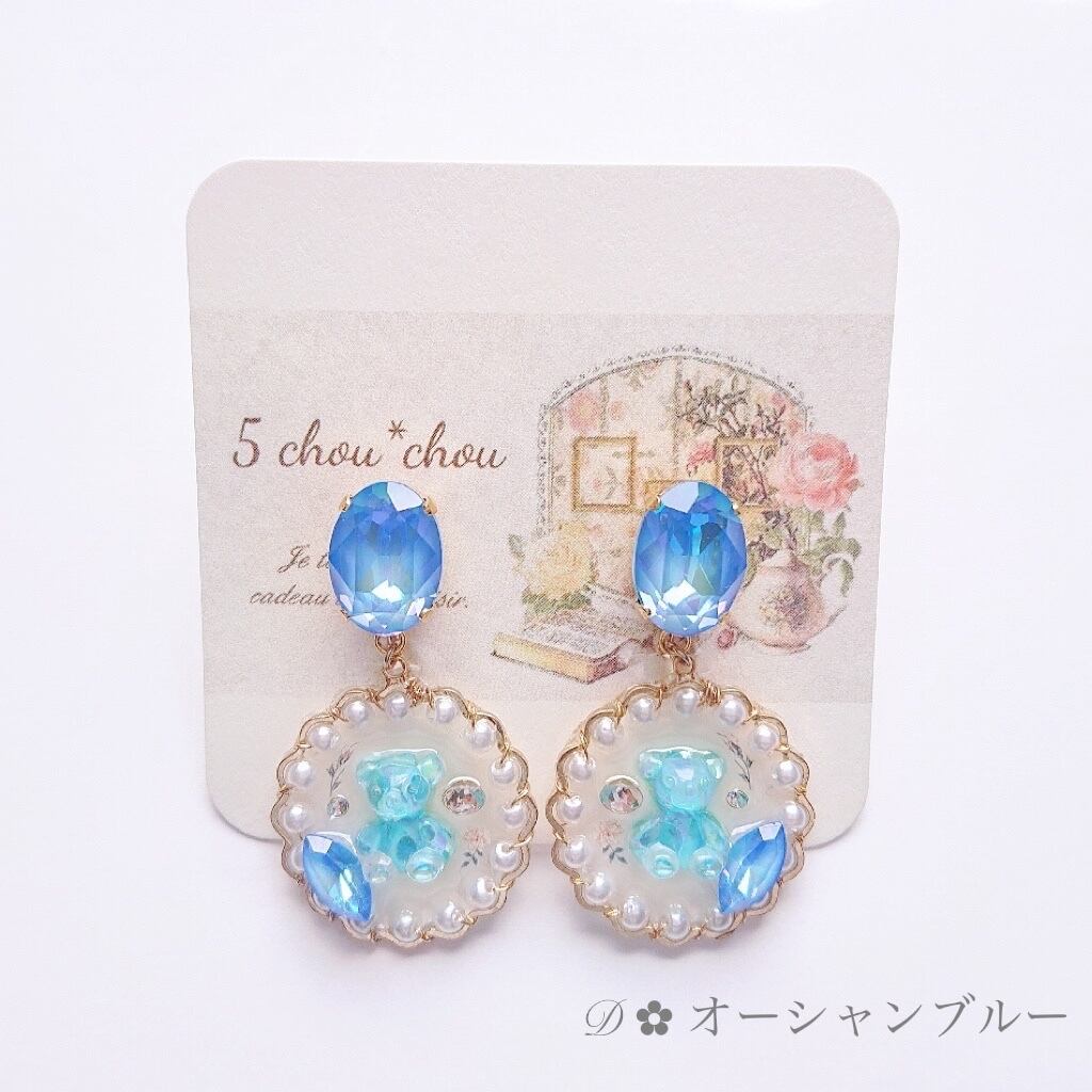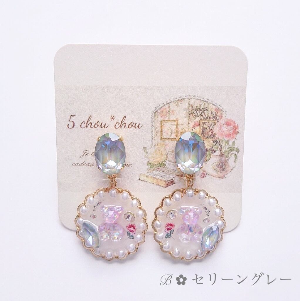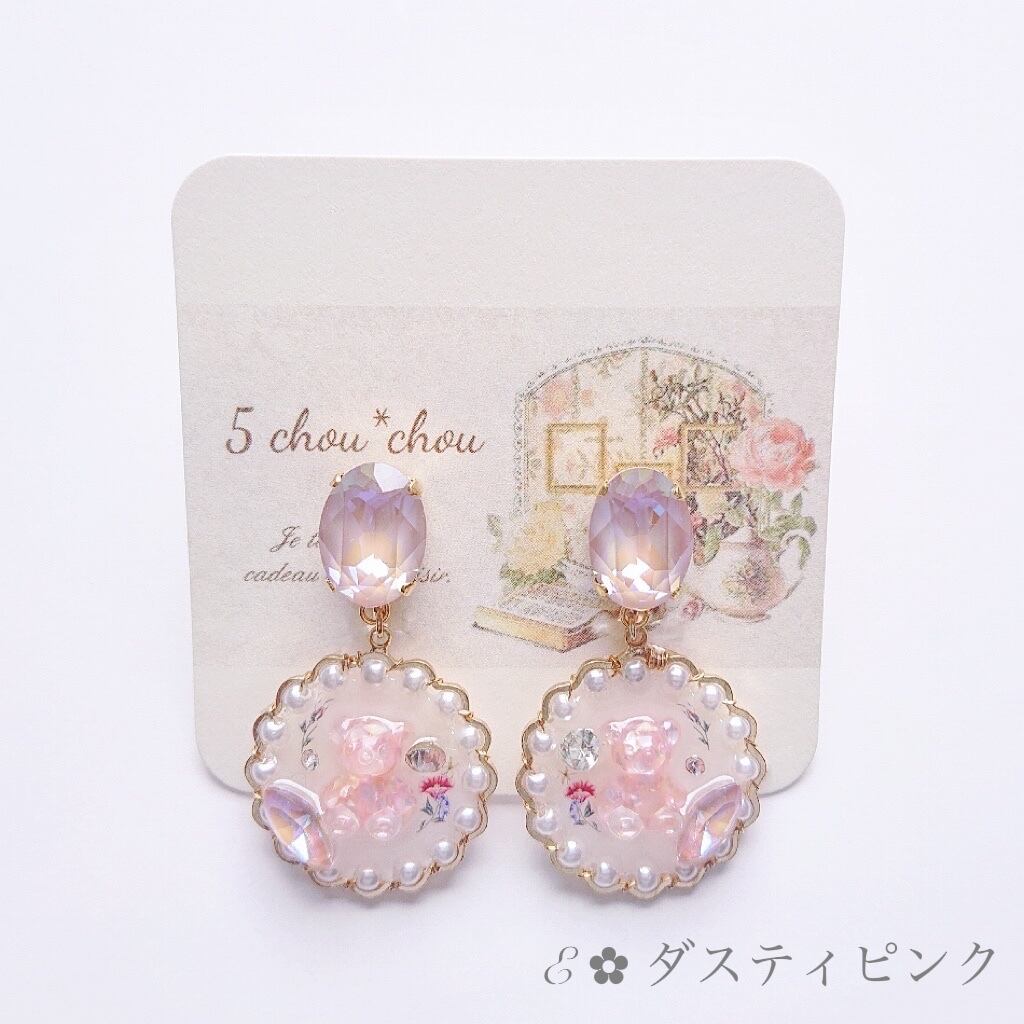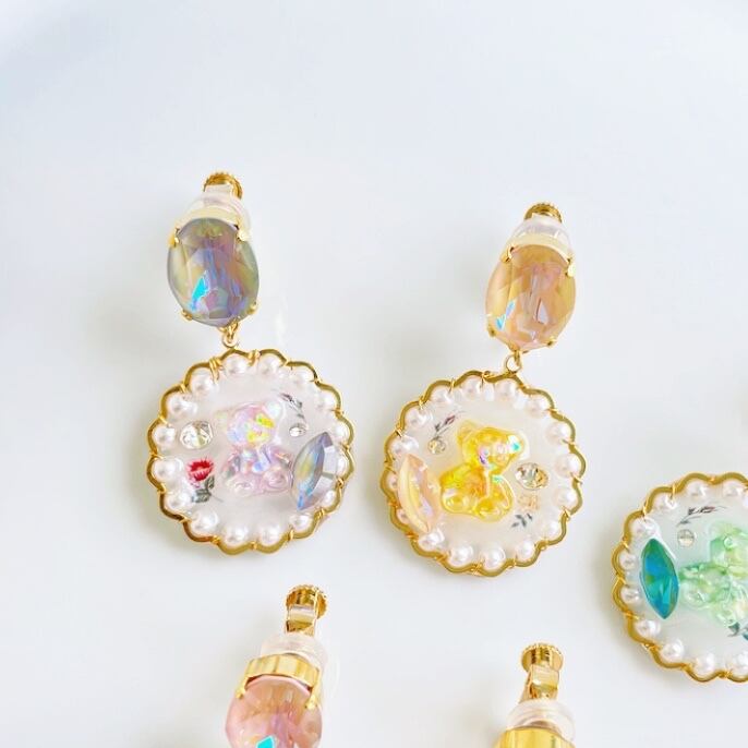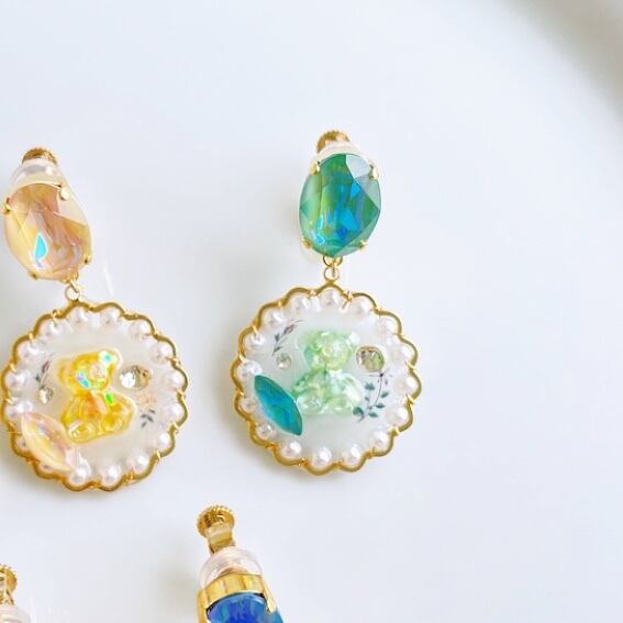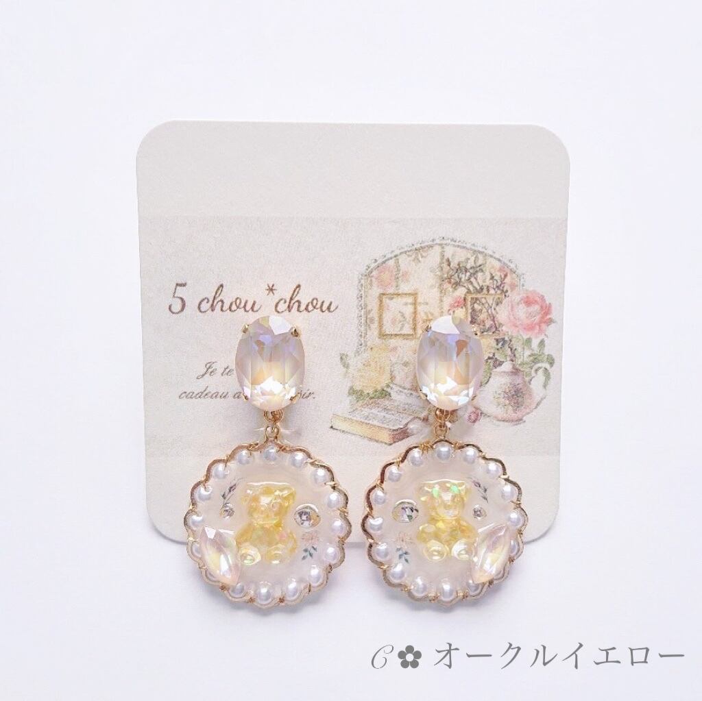イヤリング ~テディベアクリスタル~ /パール/花/キラキラ/アレルギー対応