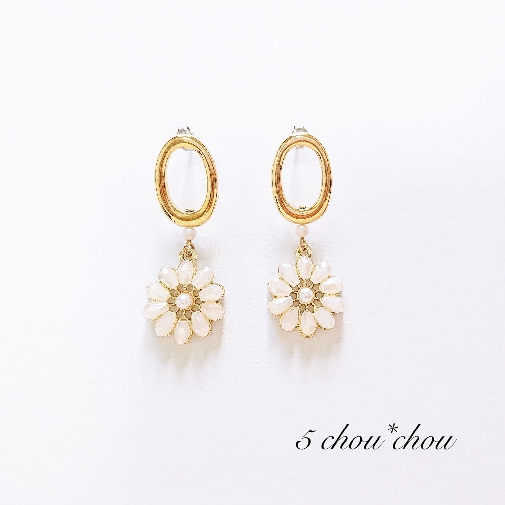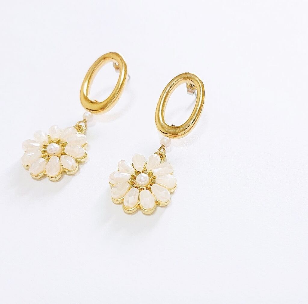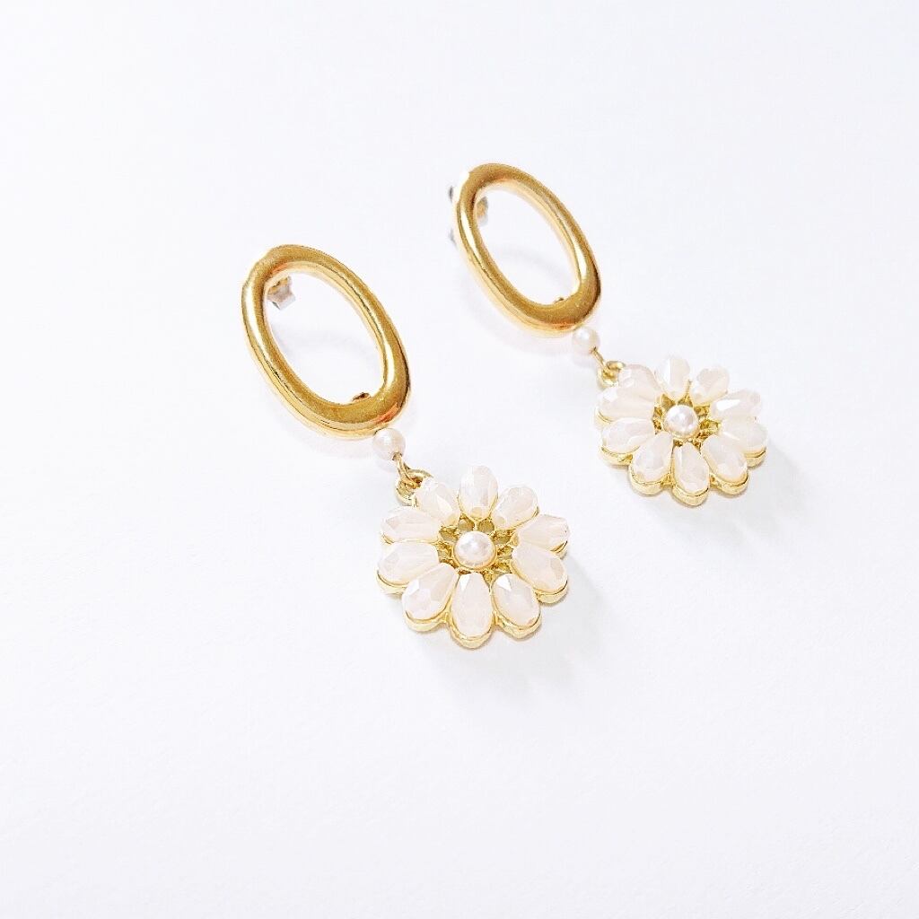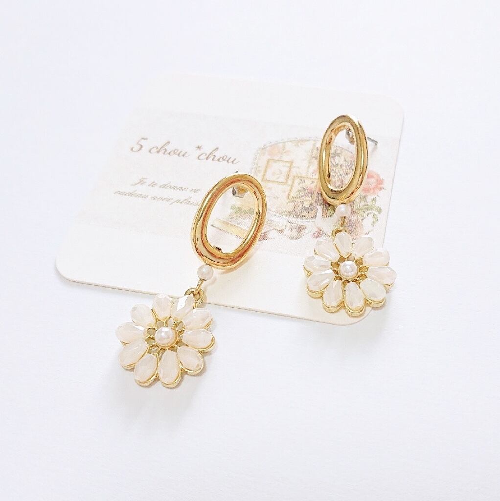 ピアス or イヤリング【 Sweet Flower 】/花/パール/ノンホール/アレルギー対応