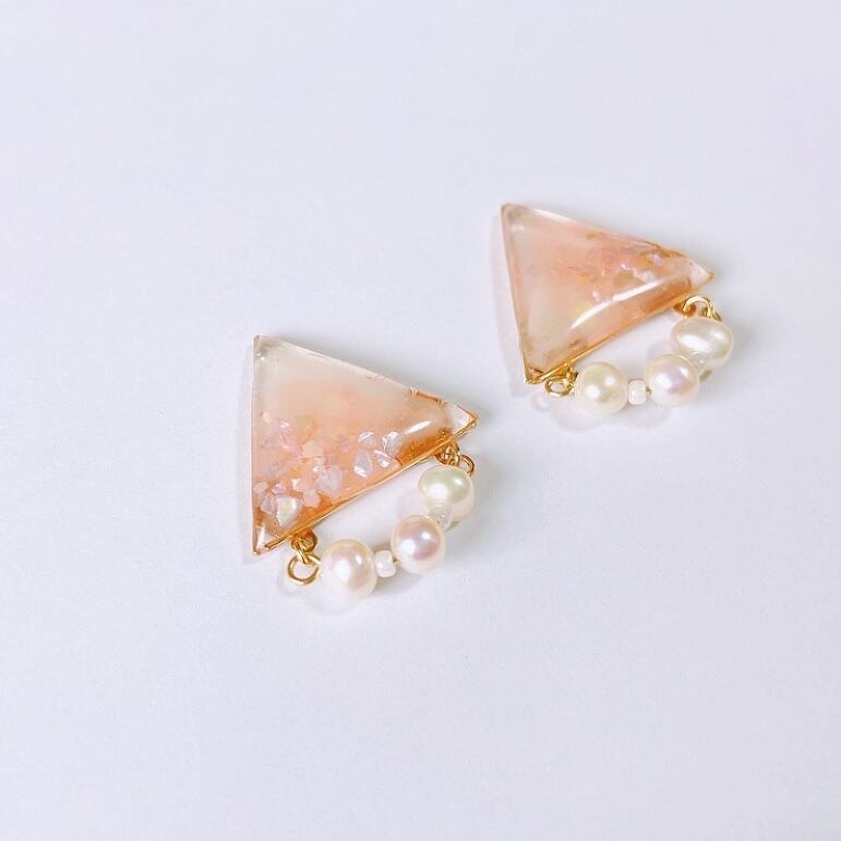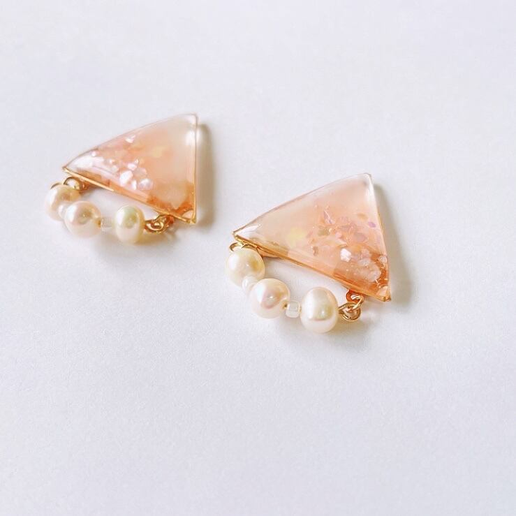 ピアス or イヤリング【 桜 】/レジン/淡水パール/シェル/ノンホール/アレルギー対応
